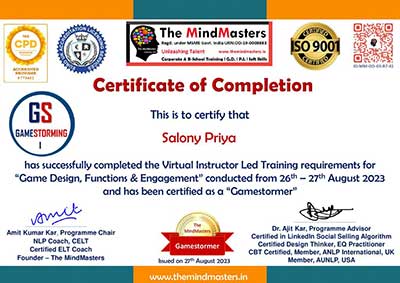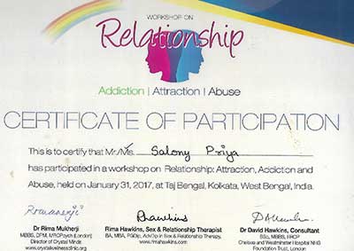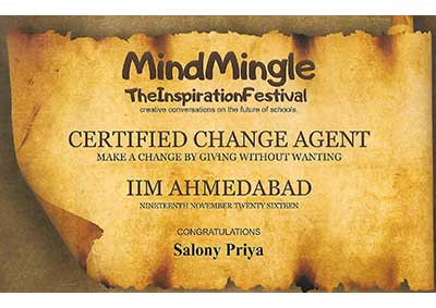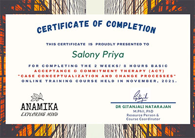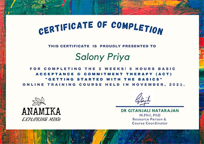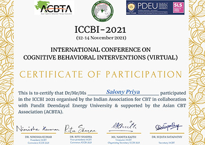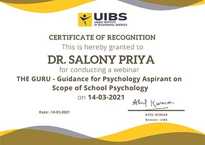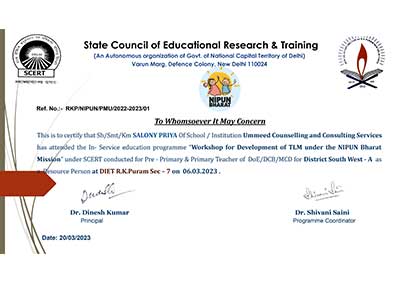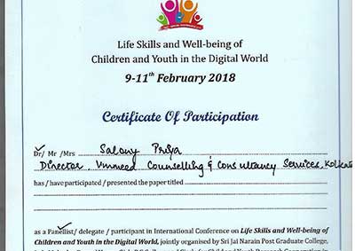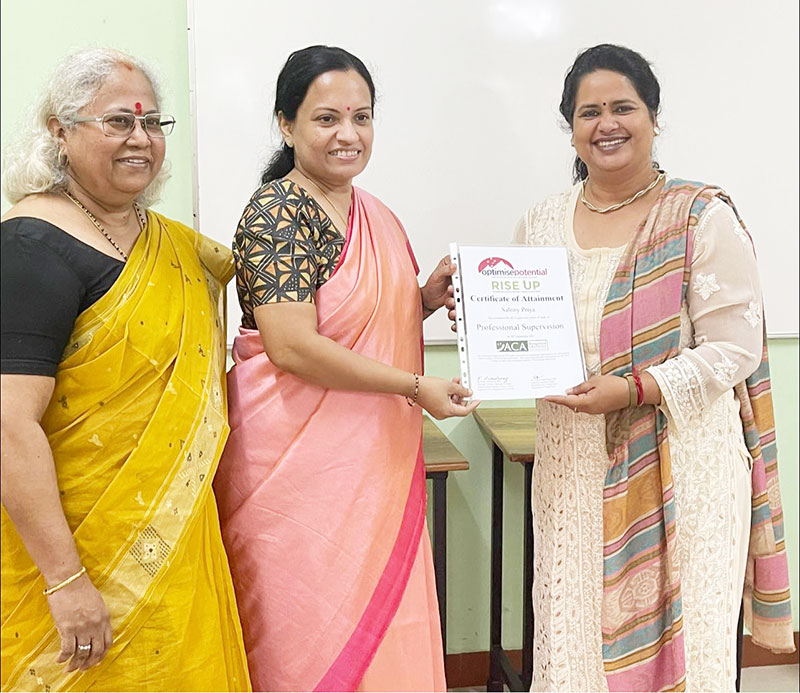 Ms. Salony Priya, Founder Director of Ummeed, certified with the international accreditation for Professional Supervisor from Australian Counselling Society after 6 months of exhaustive case submissions, research and finally 3 days intensive training as observer and supervisor at Bangalore.