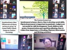 A series of positive parenting sessions at Contai Public School, Contai WB for Parents on reducing Pandemic blues and effectively utilizing time with young children at home, being there educator, fitness trainer, health inspector and caregivers who are building skills in age appropriate manner with everyday life opportunities in August 2020 by Ummeed.