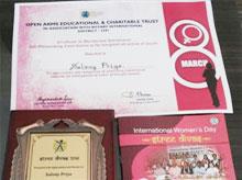 Open Arms Educational & Charitable Trust' felicitates Mrs. Salony Priya on 8th March, 2016