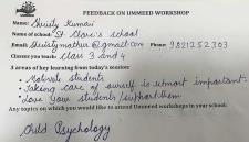 "Today's session was amazing &fruitful , all teachers know what toteach but How to teach is a very big factor for impact on child. TodaySalony mam explained that brilliantly We also learned micro teaching skillsThank you Salony Maam " Abhishek kumar Holy Family School, Bhagalpur.