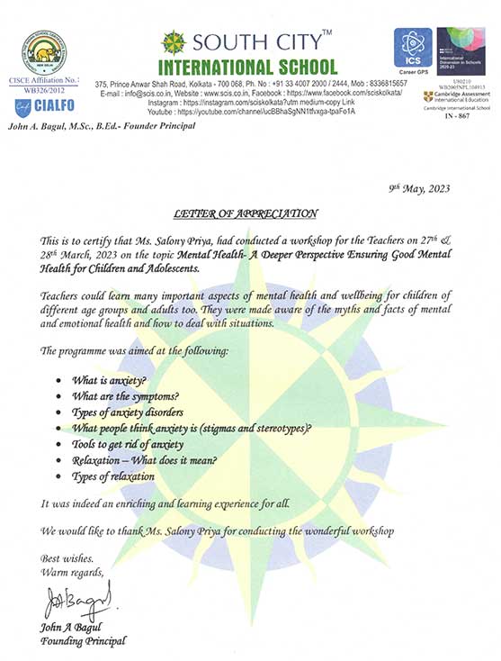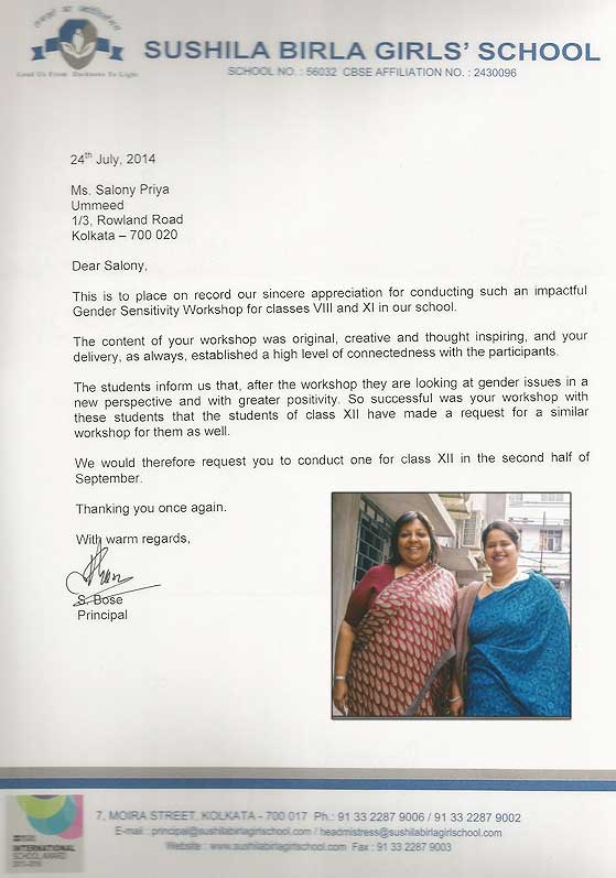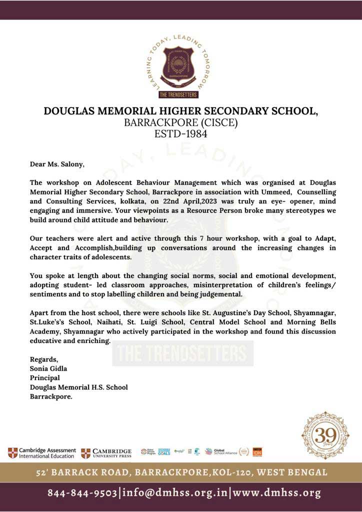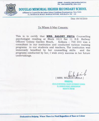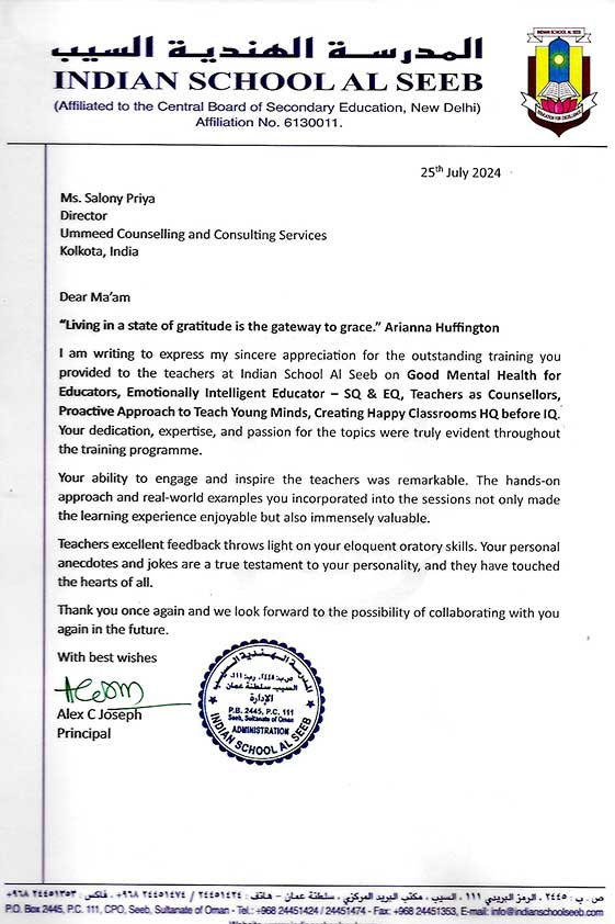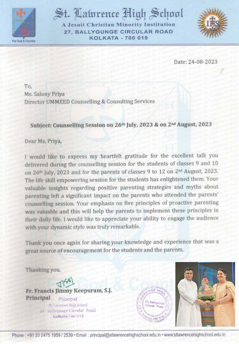 This is to state that Ms. Salony Priya of Ummeed Counselling Services has conducted a workshop on "T ...