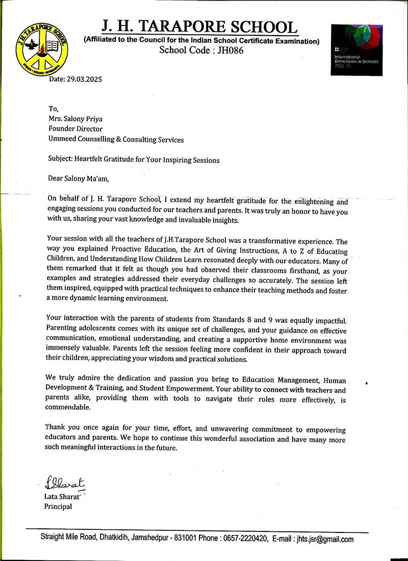 On behalf of J. H. Tarapore School, I extend my heartfelt gratitude for the enlightening and engagin ...