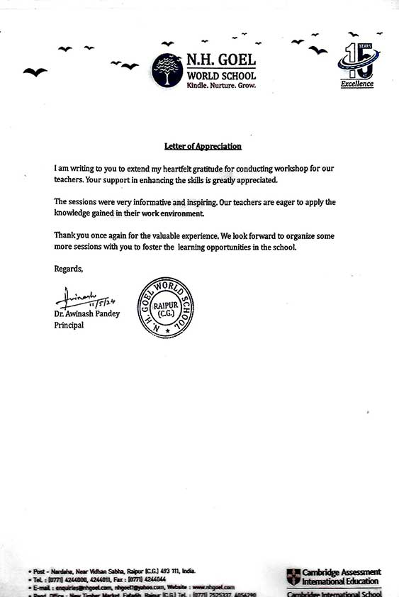 This is to place on record our sincere appreciation for conducting such an impactful workshop. The c ...