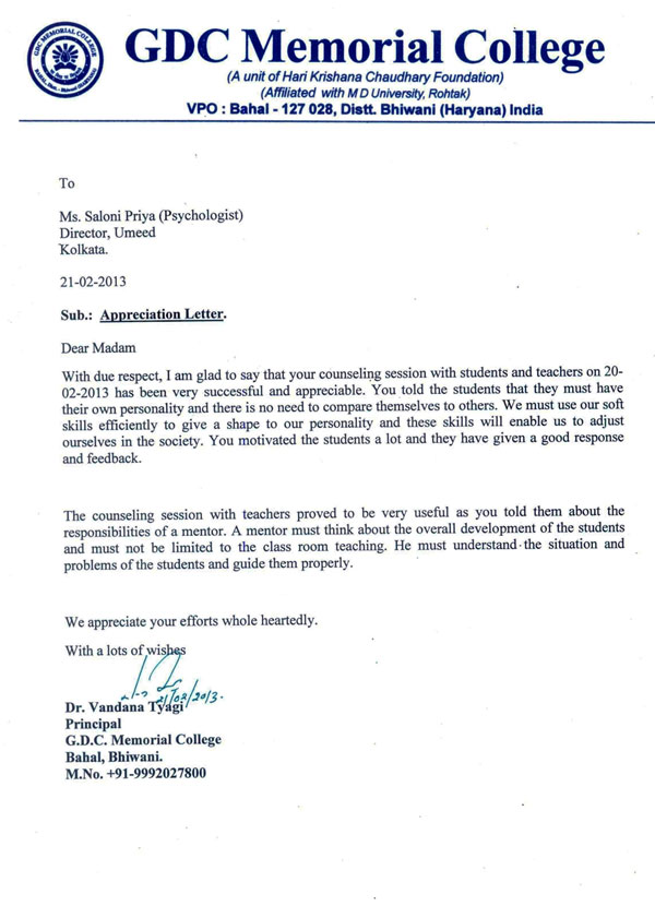 With due respect, I am glad to say that your counselling session with students and teacher on 20-02- ...