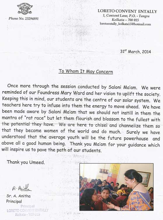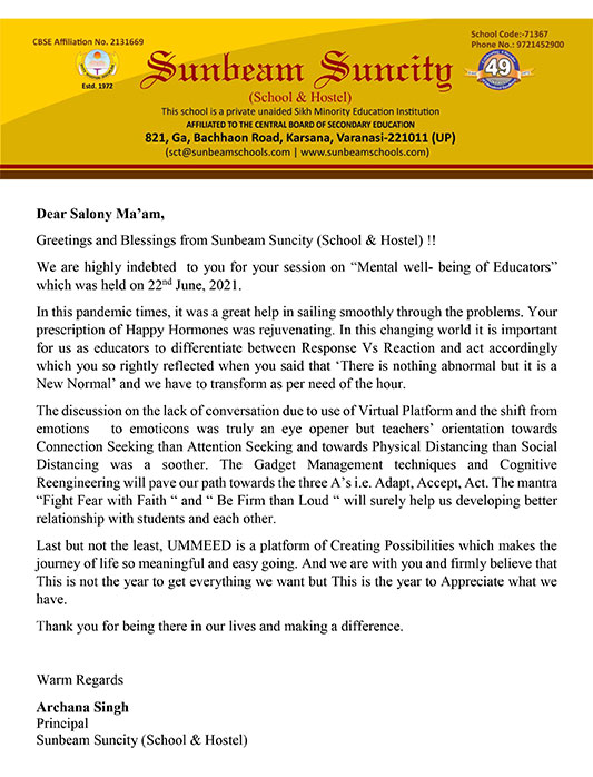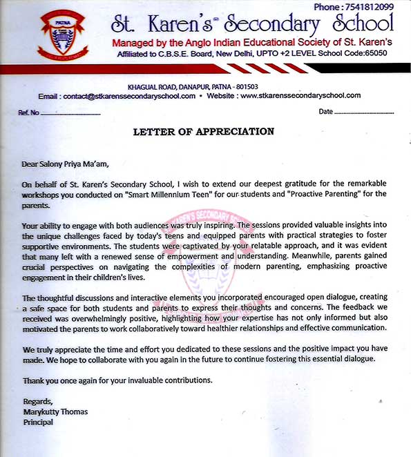Seth Anandram Jaipuria School, Lucknow, expresses gratitude to Ms. Salony Priya for her willingness ...