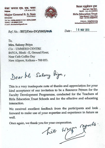While congratulating Ummeed on their 10th Anniversary, we are happy to state that Birla Education Tr ...