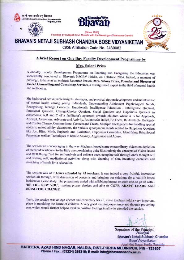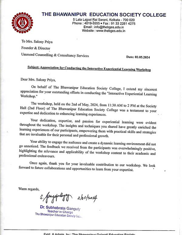 "The Bhawanipur Education Society College, Kolkata expresses gratitude to Ms. Salony Priya for condu ...