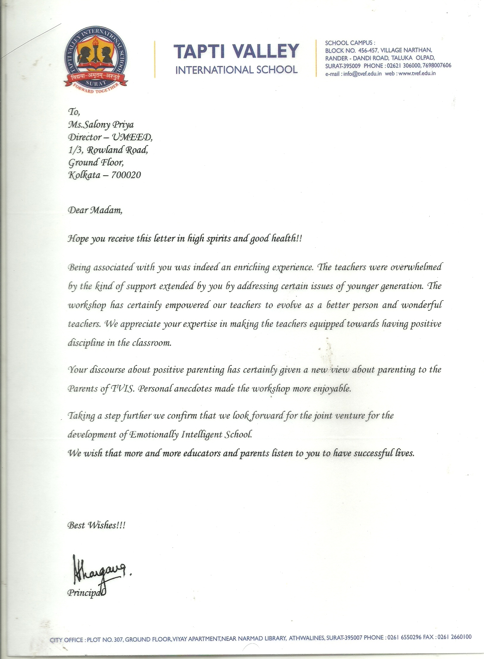 On behalf if Indian School Muladha, I would like to express my sincere gratitude for your invaluable ...