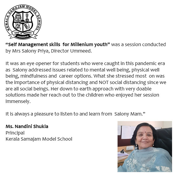 "Self Management skills for Millenium youth" was a session conducted by Mrs Salony Priya, Director ...