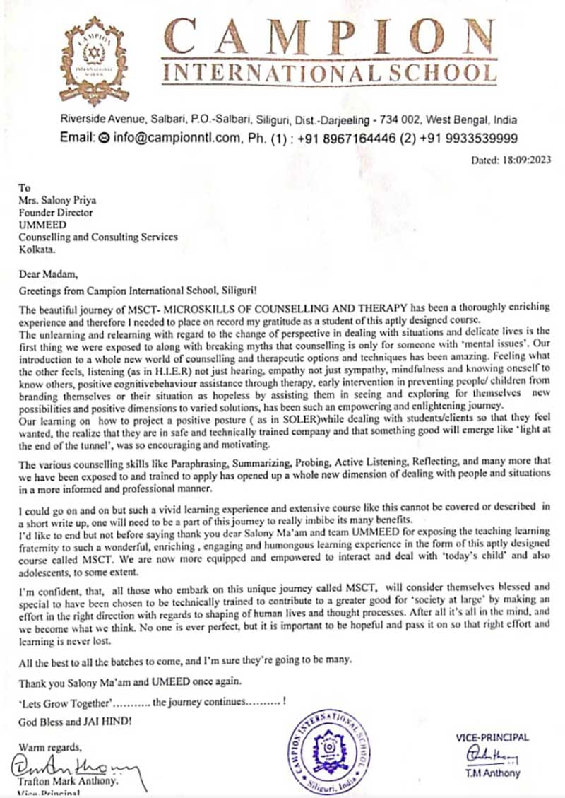 "This beautiful journey of Micro skills of counselling & Therapy has been a ...