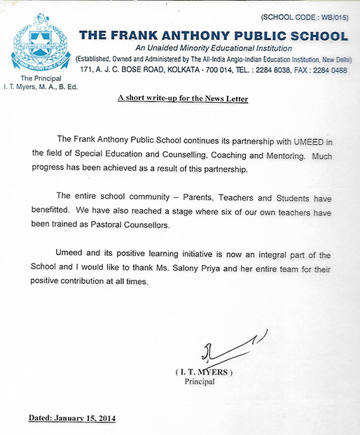 The Frank Anthony Public School continues its partnership with UMEED in the field of special educati ...