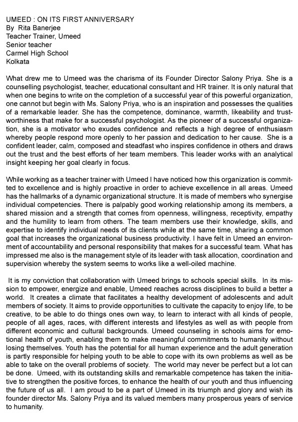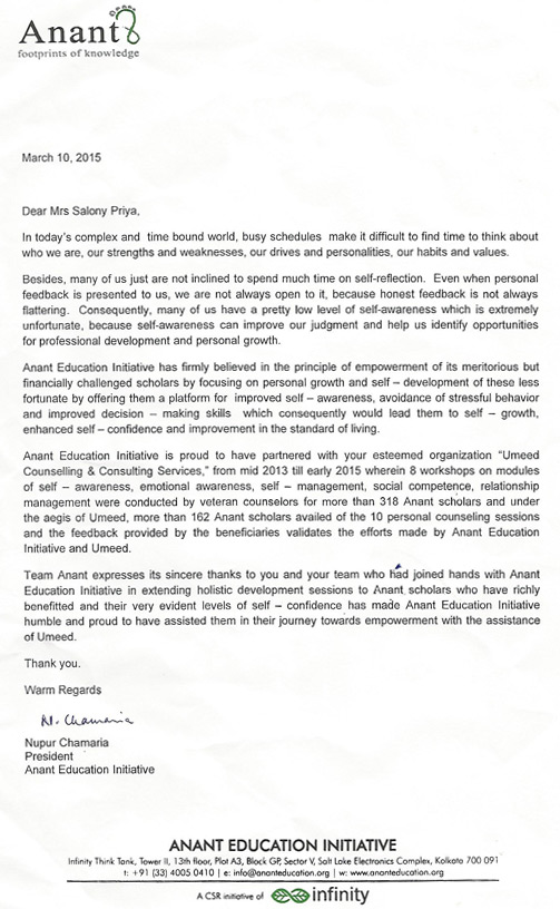 I take the privilege to congratulate the team of UMMEED under the valuable leadership of Ms. Salony ...
